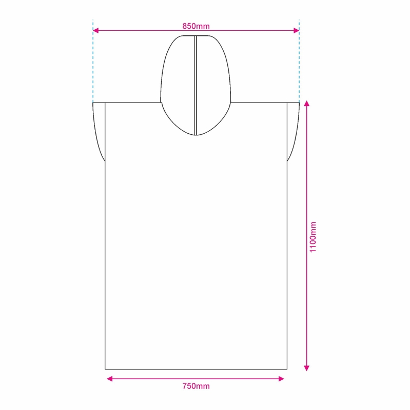 Der Poncho ist in bis zu drei Größen erhältlich: klassisch, midi und mini. So können Kinder oder Teenager ebenso wie erwachsene Strandliebhaber sie tragen, wenn sie aus dem Wasser kommen und am Strand eine kühlere Brise weht. Die eingenähte Kapuze bietet Schutz für nasses Haar, bis es getrocknet ist, und schützt sogar vor einem plötzlichen Regenschauer an der Küste. Das Angebot an Ponchos in verschiedenen Größen kommt Unternehmen zugute, die eine Werbekampagne nur auf eine bestimmte Kundengruppe ausrichten möchten – z. B. Familien mit Kindern – und Werbekleidung in einer kleineren Größe benötigen.